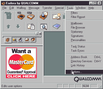 you've opened Eudora 4.3, go to Tools and choose Options.