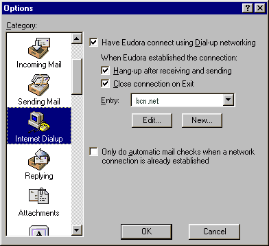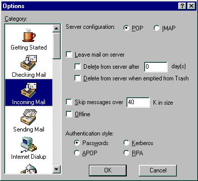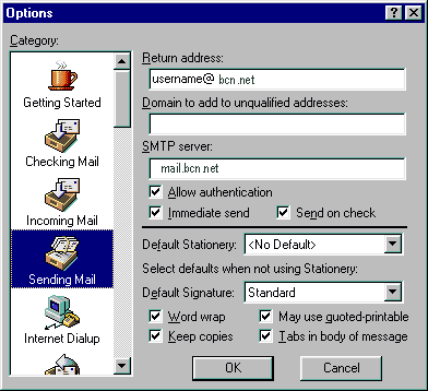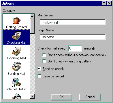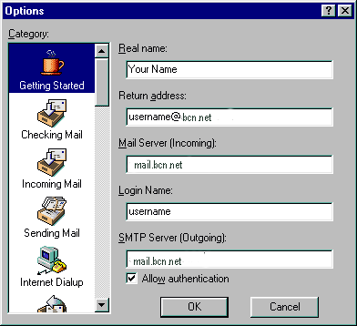 Mail tab should look like the following, once again substituting username for your bcn.net assigned User Name.