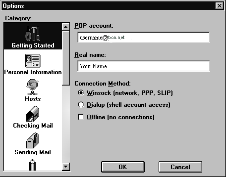 should look once filled out. You will, of course, replace the word username with your bcn.net username and Your Name with your real