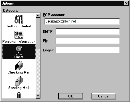 choose the category Hosts. For Eudora, all items on this screen