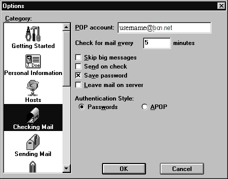 choose the category Checking Mail. There are some personal